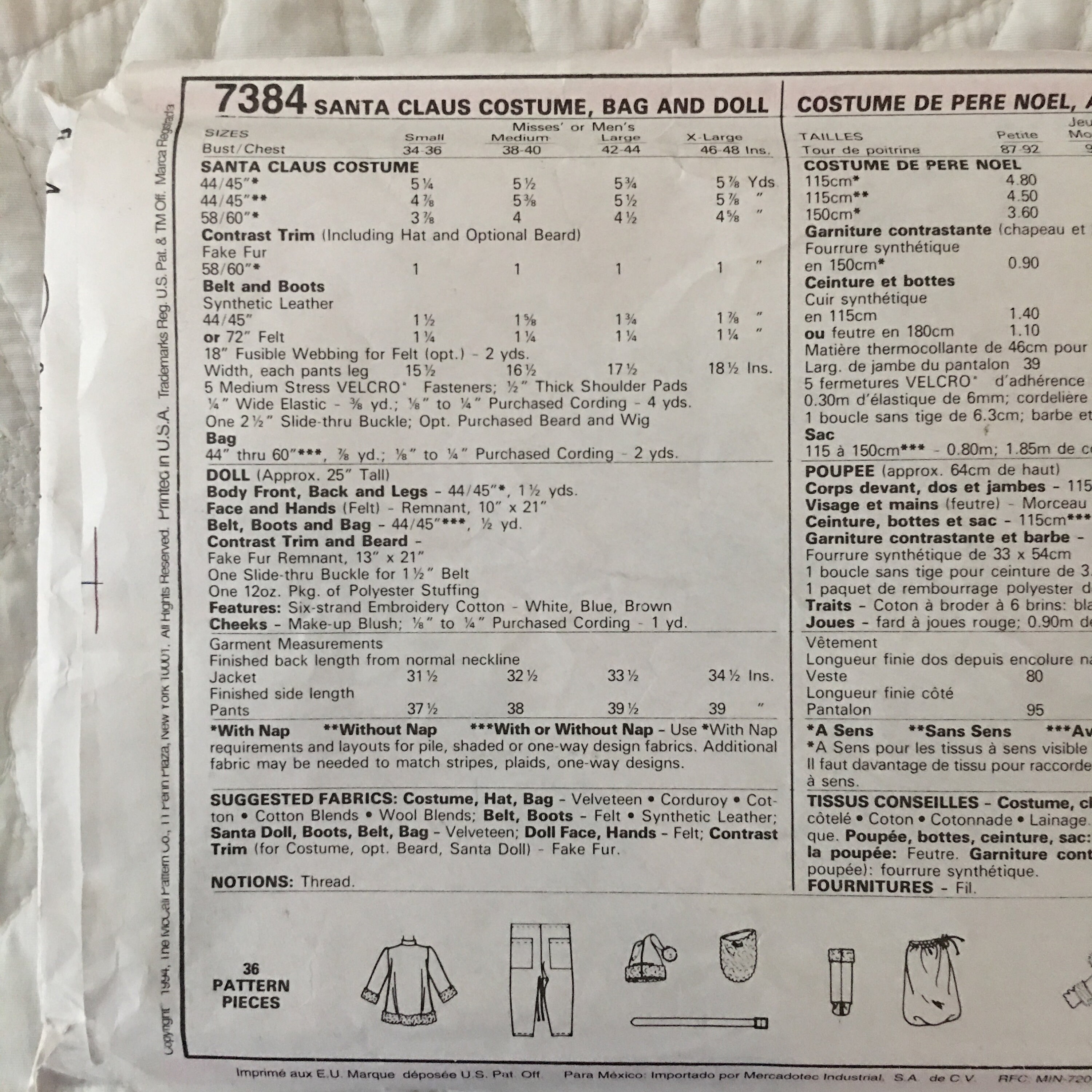 Mccall S Sewing Pattern 8992 Santa Claus Costume Bag Doll Unisex Lg 42 44 Uc Ebay